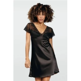 Dámska saténová košeľa s krátkymi rukávmi.Strih je v spodnej časti mierne rozšírený.