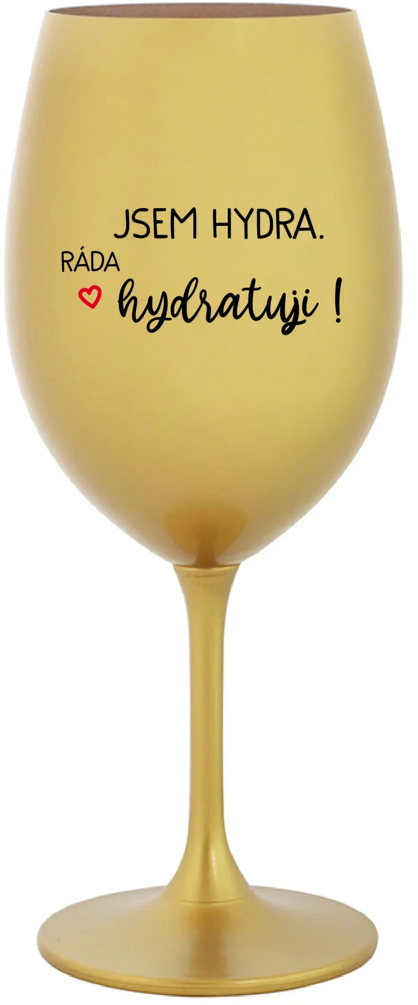 JSEM HYDRA. RÁDA HYDRATUJI! - zlatá sklenice na víno 350 ml