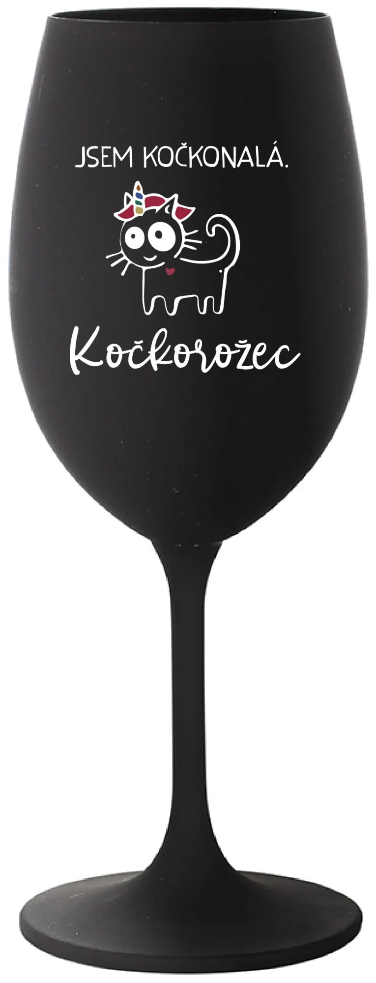 JSEM KOČKONALÁ. KOČKOROŽEC - černá sklenice na víno 350 ml