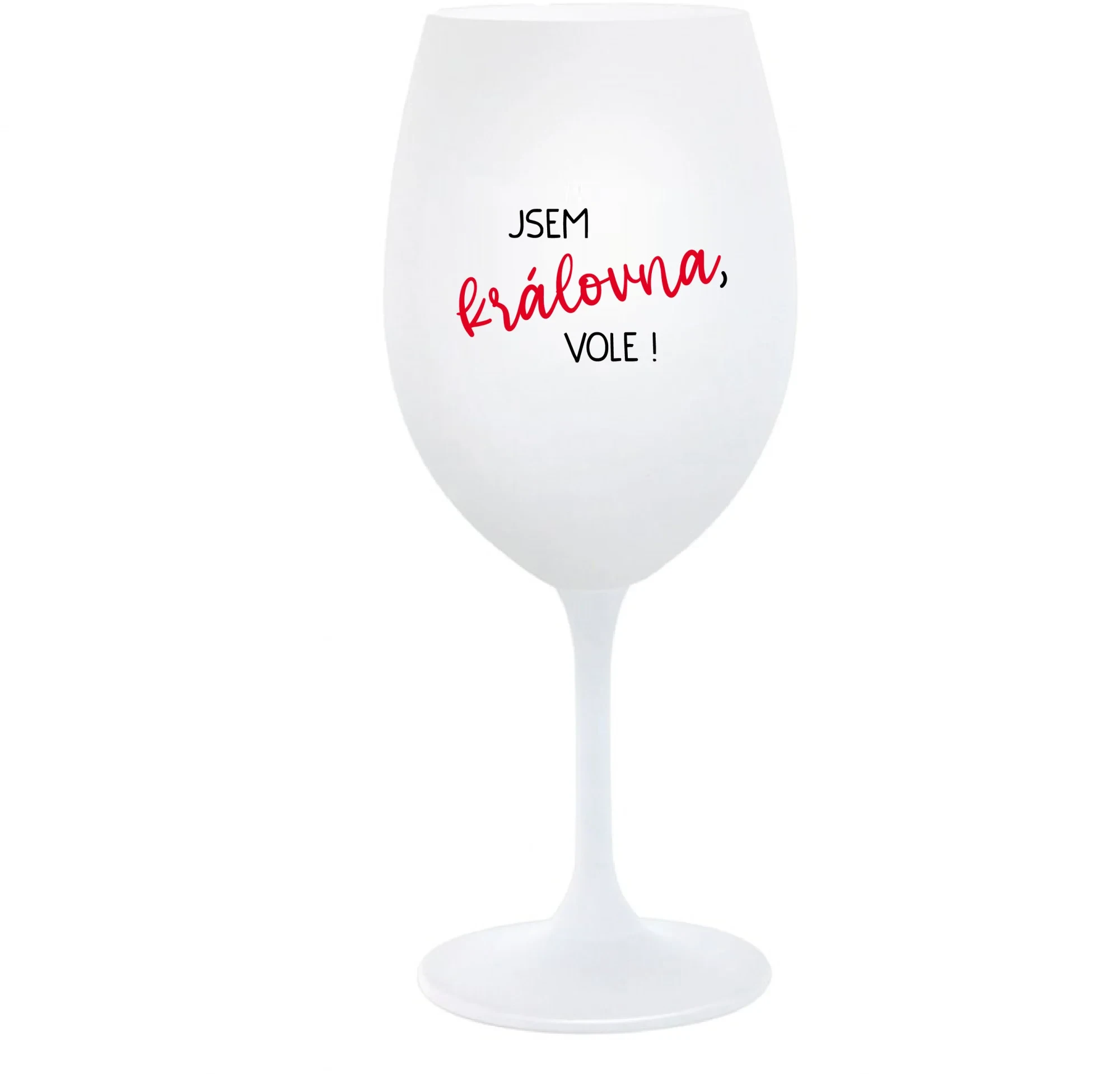 JSEM KRÁLOVNA, VOLE! - bílá sklenice na víno 350 ml