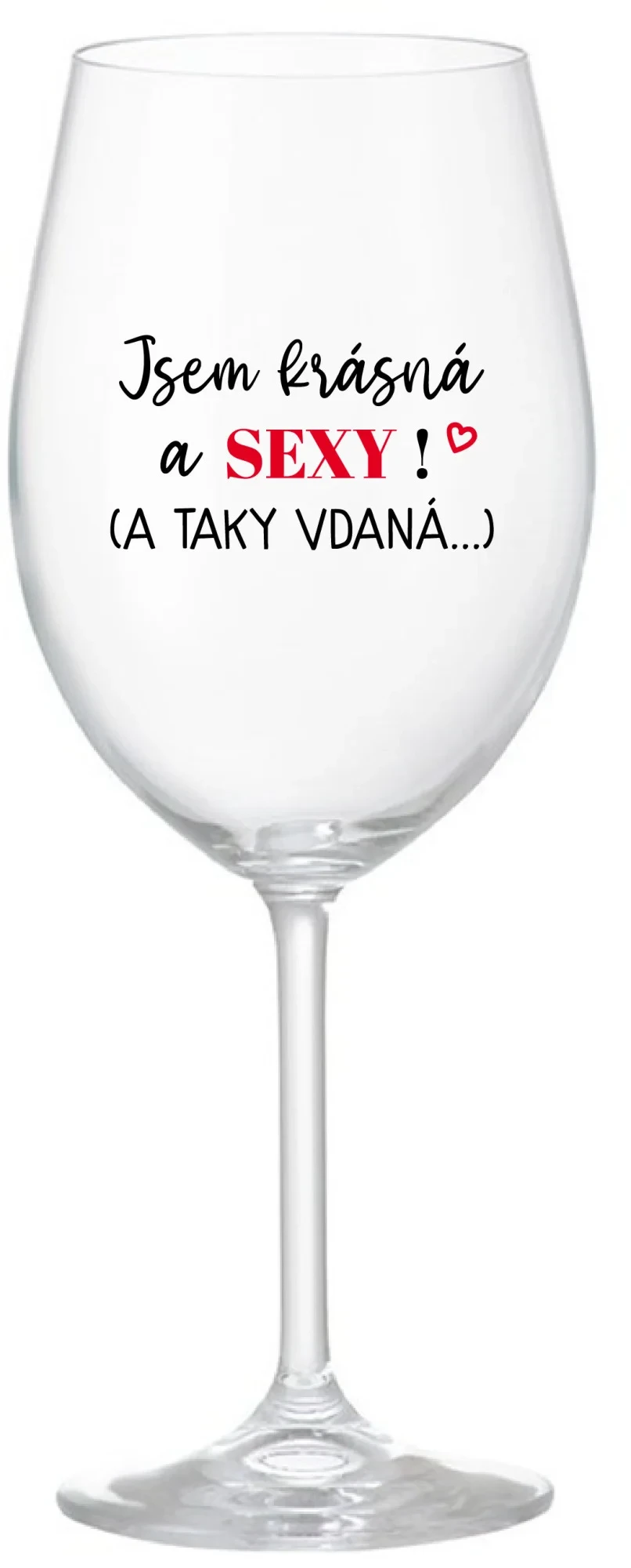 JSEM KRÁSNÁ A SEXY! (A TAKY VDANÁ...) - čirá sklenice na víno 350 ml
