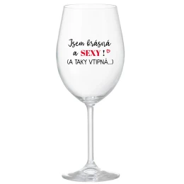 JSEM KRÁSNÁ A SEXY! (A TAKY VTIPNÁ...) - čirá sklenice na víno 350 ml