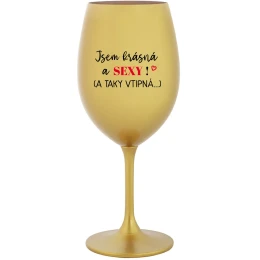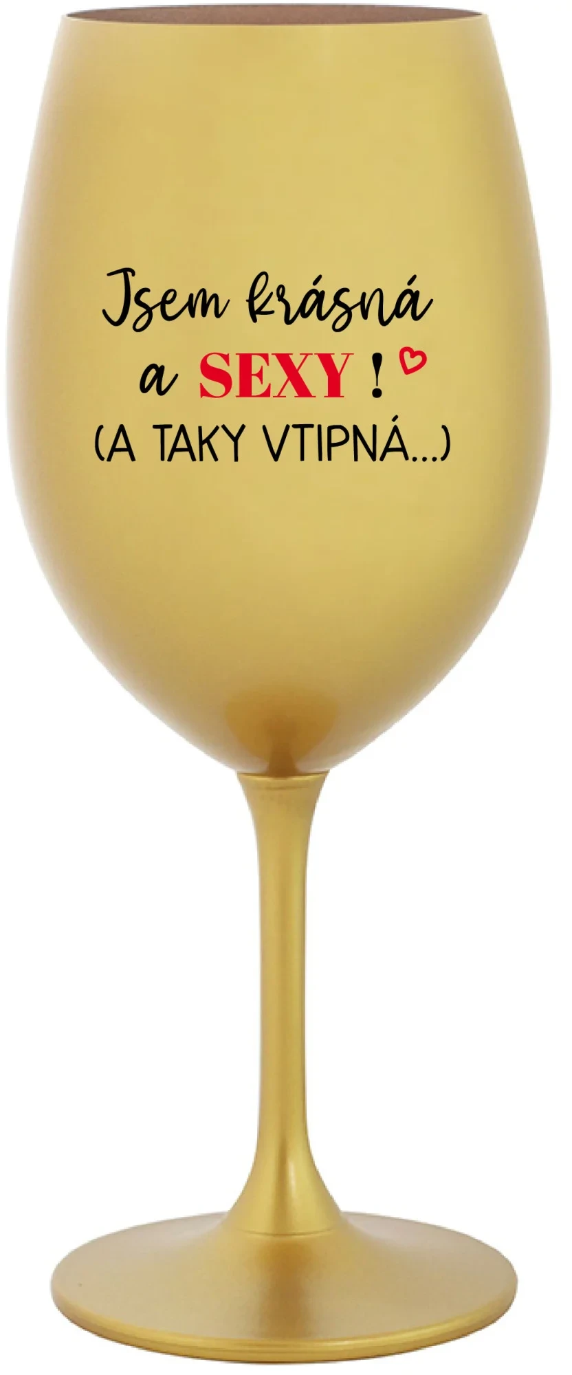 JSEM KRÁSNÁ A SEXY! (A TAKY VTIPNÁ...) - zlatá sklenice na víno 350 ml