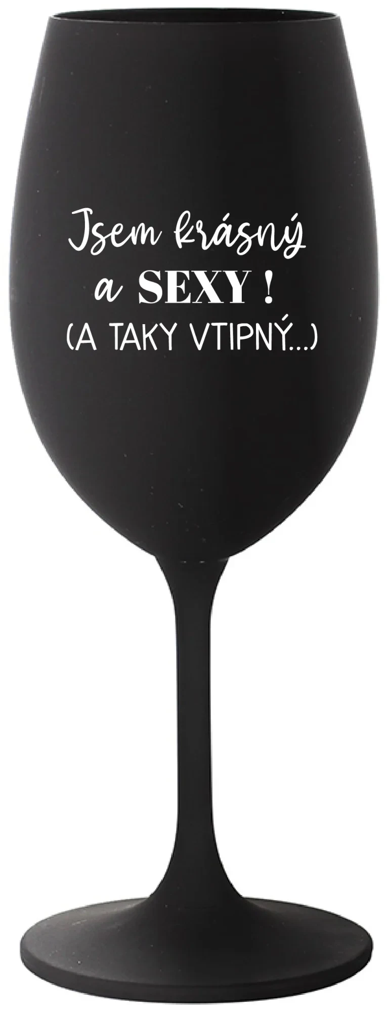 JSEM KRÁSNÝ A SEXY! (A TAKY VTIPNÝ...) - černá sklenice na víno 350 ml