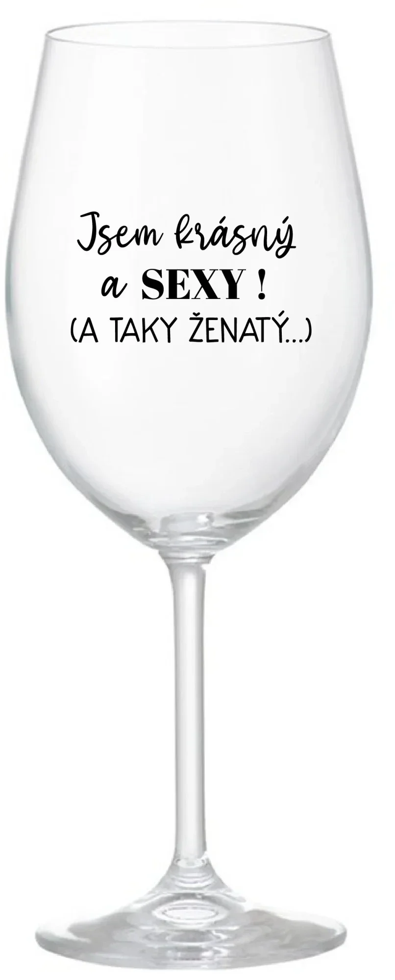 JSEM KRÁSNÝ A SEXY! (A TAKY ŽENATÝ...) - čirá sklenice na víno 350 ml