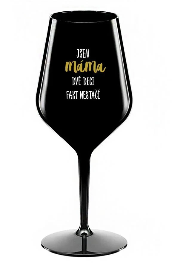 JSEM MÁMA, DVĚ DECI FAKT NESTAČÍ - černá nerozbitná sklenice na víno 470 ml