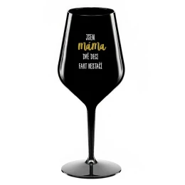 Nerozbitná černá vinná sklenice s motivem JSEM MÁMA, DVĚ DECI FAKT NESTAČÍ je skvělá na zahradu, pláž, výlet, piknik a parádu udělá i při kempování. Jelikož je vyrobená z kvalitního polykarbonátu je de facto nerozbitná. Je to luxusní kousek, s nímž si víno můžete vychutnat prostě kdekoliv. Mají ergonomický tvar, který příjemně padne do ruky a protože je lehká, usnadňuje to její přenášení. Je snadno skladovatelná a lehce se čistí. Díky svému designu si s ní můžete vychutnat doopravdy kdekoliv bezproblémové pití výborného vína.parametre