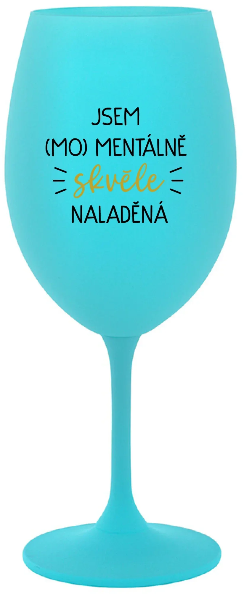 JSEM (MO)MENTÁLNĚ SKVĚLE NALADĚNÁ - tyrkysová sklenice na víno 350 ml