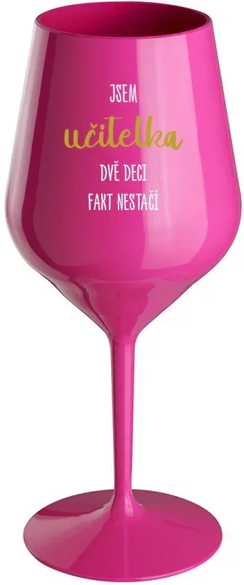 JSEM UČITELKA, DVĚ DECI FAKT NESTAČÍ - růžová nerozbitná sklenice na víno 470 ml