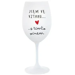 Vinná bílá sklenice s originálním motivem JSEM VE VZTAHU S TÍMTO VÍNEM je krásným a osobitým dárkem, které ale využijete i Vy sami třeba ve chvílích, kdy si budete chtít zpříjemnit náročný den. Tyto originální vinné sklenice jsou totiž nejen pro výjimečné události, ale i pro běžné večery, které si chcete zpříjemnit sklenkou dobrého vína. Jistě proto potěší každého milovníka vína, i toho, kdo si umí svůj život vychutnat plnými doušky. Materiál sklo. Vyrobené s láskou v ČR