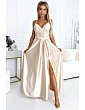 Pridanie recenzie k 512-7 JULIET elegantné dlhé trblietavé šaty s výstrihom a rozparkom na nohách - ZELENÉ s trblietkami
