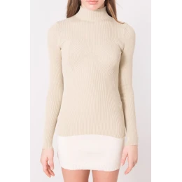 BSL Svetlo béžový rebrovaný sveter s rolákom.