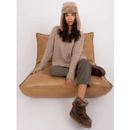 Tmavobéžový károvaný vlnený sveter .