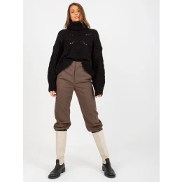Čierny voľný sveter s rolákom a ažúrovým vzorom .