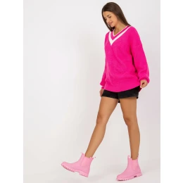 Fluo ružový dlhší nadrozmerný sveter s výstrihom do V RUE PARIS .