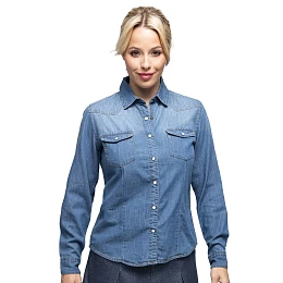 Damska koszula jeansowa to doskonałe połączenie stylu, wygody i ponadczasowej elegancji. Wykonana z wysokiej jakości tkaniny jeansowej, świetnie układa się na sylwetce i podkreśla jej atuty dzięki taliowanemu fasonowi. Model został zaprojektowany z myślą o kobietach, które cenią modne detale oraz uniwersalne ubrania do codziennych i bardziej stylowych stylizacji. Koszula posiada elegancki kołnierzyk ze stójką, który nadaje całości nowoczesnego i kobiecego charakteru. Dwie przednie kieszenie podkreślają jej casualowy styl, a dekoracyjne przeszycia dodają wyrazistości i modowego akcentu. Wewnątrz kołnierzyka zastosowano ozdobną taśmę, która stanowi subtelny, estetyczny detal. Całość uzupełniają metalowe zatrzaski z białym wypełnieniem, które nie tylko przyciągają wzrok, ale także zwiększają komfort użytkowania. Damska koszula z jeansu świetnie sprawdzi się zarówno w zestawieniu z klasycznymi spodniami, jak i legginsami czy spódnicą. To idealny wybór na co dzień