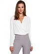 95% polyester 5% elastan Toto je štýlová a elegantná blúzka vyrobená z efektnej, ľahkej tkaniny. Má sexy zavinovaciu prednú časť a elastický lem. DETAILY VÝROBKU: tkaná tkanina zavinovacia predná časť blúzky ťahaná cez hlavu dlhé rukávy elastický lem Modelka je vysoká 175 cm a nosí veľkosť S