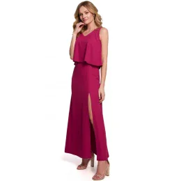 K048 Maxi šaty s volánom - slivka