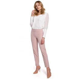 K055 Nohavice s úzkymi nohavicami - krepová ružová
