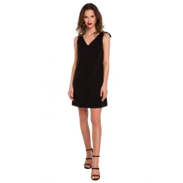 Pridanie recenzie k K128 Jednoduché šaty áčkového strihu s mašľou - čierne