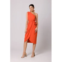 K160 Šaty na jedno rameno - koralové