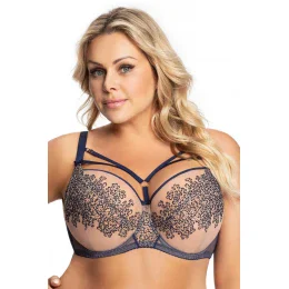 Podprsenka je vyrobená z transparentnej dvojitej sieťoviny ozdobenej efektnou výšivkou. Nad košíčkami sú ozdobné pásiky, ktorých dĺžku je možné nastaviť. Pohodlná široké ramienka je možné nastaviť, ale nemožno ich odopnúť.