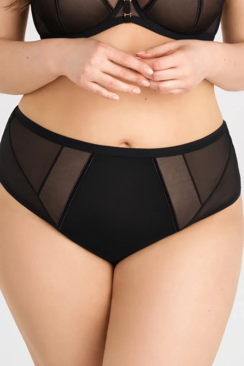 Tył z tiulu elastycznego wykończony na gładko, tak aby majtki nie odznaczały się pod ubraniem