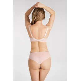 Górna krawędź miski wykończona delikatnie połyskującą taśmą, płynnie przechodzi do ramiączka powodując lepsze podtrzymanie biustu