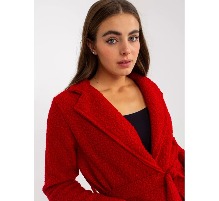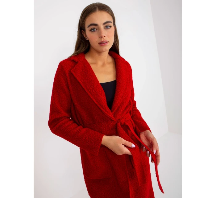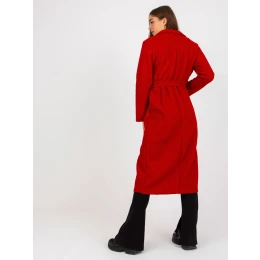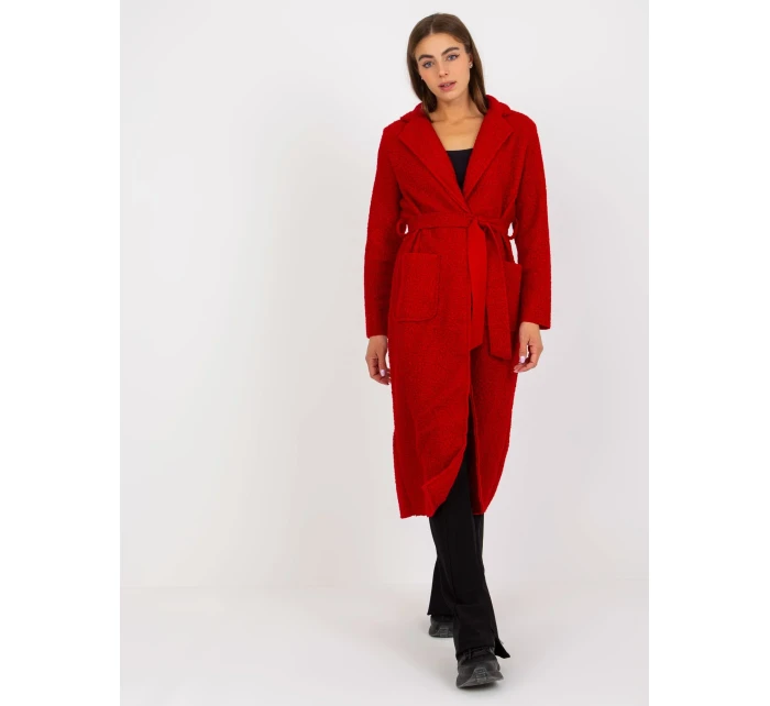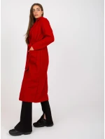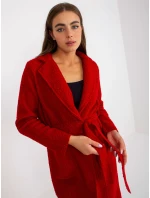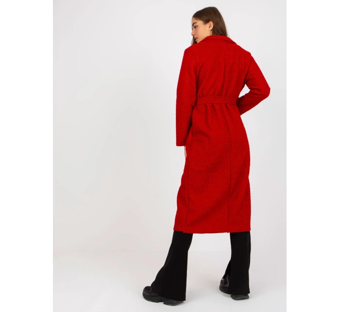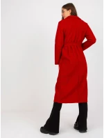 Červený plyšový maxi kabát s opaskom Merve OCH BELLA .