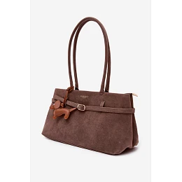 Kabelka z imitace semiše přívěsek jezevčík tmavě béžová Noellea