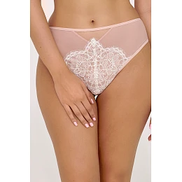 Spodná časť - s vyšším pásom, vpredu zdobená čipkou, ktorá vytvára výraznú kompozíciu. Zadná časť z hladkého mikrovlákna poskytuje plné pohodlie a hladký povrch pod oblečením.