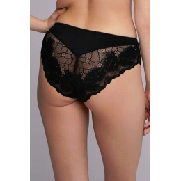 Figi AV 2253 Black to wyjątkowe połączenie elegancji, zmysłowości i komfortu. Wykonane z lekkiej, misternie tkanej koronki pięknie podkreślają kobiece kształty, a gładka, elastyczna góra zapewnia idealne dopasowanie do sylwetki. Tył z transparentnej koronki o kwiatowym wzorze dodaje bieliźnie subtelnego uroku oraz lekkości, jednocześnie pozostając delikatny dla skóry. To model, który łączy funkcjonalność z wyrafinowanym stylem — idealny jako komplet z biustonoszem AV 2253 Black.