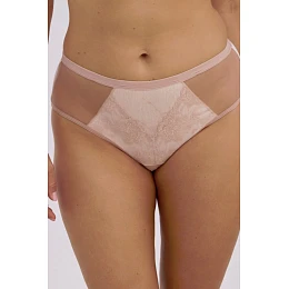 Štýlové a ženské plné nohavičky v jemnom moka odtieni sú dizajnom pre ženy, ktoré oceňujú jemnosť a pohodlie. Prednú časť zdobí elegantná čipka v kombinácii s ľahkou sieťovinou, ktorá celku dodáva jedinečnú ľahkosť. Zadná časť je vyrobená z hladkého, nepriehľadného mikrovlákna, ktoré poskytuje plné pohodlie a dokonale sa prispôsobí postave. Ideálne na každodenné nosenie a špeciálne príležitosti.