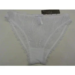 Kalhotky FV0275 Maya - Fauve klasického střihu, přední díl je z bílé krajky zdobený saténovou mašličkou. Složení 72% nylon 17% lycra 11% bavlna.