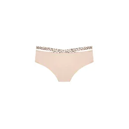 Zajímavý design, který okamžitě upoutá pozornost. Zde je spodní díl bikin, jehož přední část zdobí dvě křížící se tvarovaná ramínka. Sexy a jedinečné zároveň. Pro zvýšení efektu je vrchní část spodního prádla vyrobena ze saténu doplněného krásným kočičím vzorem. Hladké dno ve světle béžové barvě. Návrh hodný pozornosti!