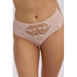 Stylowe i kobiece pełne figi w odcieniu delikatnej mokki to propozycja dla kobiet ceniących subtelność i wygodę. Przód zdobi elegancka koronka połączona z lekką siateczką, która nadaje całości wyjątkowej lekkości. Tył wykonany jest z gładkiej, nieprześwitującej mikrofibry, zapewniającej pełen komfort noszenia i doskonałe dopasowanie do sylwetki. Idealne zarówno na co dzień, jak i na wyjątkowe okazje.