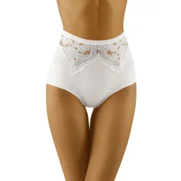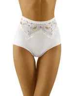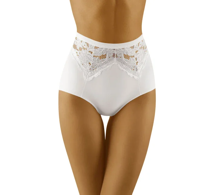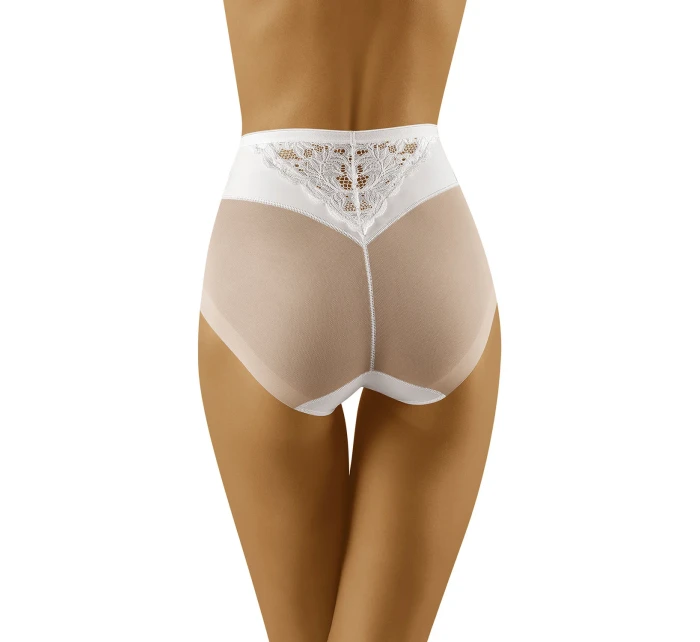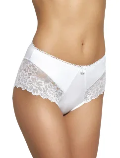 Elegantné nohavičky obopínajúce postavu. - vysoký strih - predná a zadná časť sú v hornej časti zdobené čipkou. - zadná časť zo sieťoviny nadvihuje zadoček a vďaka plochému povrchu je spodná bielizeň neprehliadnuteľná pod oblečením. - nohavičky sú vyrobené z hladkého, elastického úpletu.