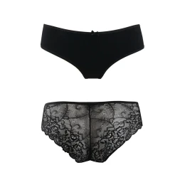 Přední díl kalhotek je hladký a je ušitý z bavlny. Zadní díl modelu tvořjí jemná krajka.