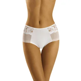 Krásne, ženské nohavičky vyrobené z kombinácie jemnej sieťoviny, čipky a hladkého mikrovlákna. Mierne plnší rez, úhľadne prezentovaný.