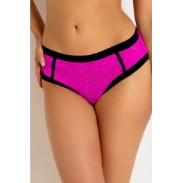 Figi Brazyliany Joy 19234 Mediolano to odważna i zmysłowa propozycja dla kobiet, które kochają połączenie wygody i efektownego wyglądu. Wykonane z transparentnej, elastycznej koronki w intensywnym różowym kolorze, z kontrastującymi czarnymi lamówkami, tworzą modny i kobiecy look. Krój brazylijski subtelnie eksponuje pośladki, optycznie wydłużając nogi i podkreślając sylwetkę. Lekka konstrukcja zapewnia pełen komfort noszenia, a dodatek bawełny wewnątrz dba o higienę i świeżość. Idealne zarówno na co dzień, jak i na specjalne okazje –duet idealnyz BIUSTONOSZ JOY SOFT 19234.