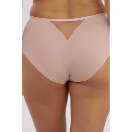 Stylowe i kobiece pełne figi w odcieniu delikatnej mokki to propozycja dla kobiet ceniących subtelność i wygodę. Przód zdobi elegancka koronka połączona z lekką siateczką, która nadaje całości wyjątkowej lekkości. Tył wykonany jest z gładkiej, nieprześwitującej mikrofibry, zapewniającej pełen komfort noszenia i doskonałe dopasowanie do sylwetki. Idealne zarówno na co dzień, jak i na wyjątkowe okazje.