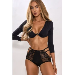 Dámské kalhotky s vysokým pasem a krajkou ELEGANT SHAPE jsou elegantním návrhem, který kombinuje smyslnou jemnost krajkového detailu s moderním střihem, který zdůrazňuje postavu. Kombinace hladké, elastické látky s průhlednými krajkovými bočními částmi vytváří efektní a zároveň velmi pohodlný celek. Dvojité proužky umístěné v horní části dodávají modelu lehkost a moderní, decentně odvážný charakter. Kalhotky ELEGANT SHAPE jsou skvělou volbou pro ženy, které hledají spodní prádlo, které spojuje komfort s výraznou estetikou. Osloví jak v běžném nošení, tak i jako součást smyslnějšího, stylového spodního prádla. Každý model Pure Sin je vyroben z kvalitních materiálů s důrazem na detaily, dokonalému přizpůsobení ženské postavě a preciznímu zpracování. Je to spodní prádlo, které okouzlí svou formou a zajistí pohodlí při nošení, protože smyslnost si zaslouží dokonalé provedení.