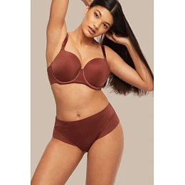 Hnedé dvojsieťované tangá Comfort P-861/2 spájajú pohodlie a jemné tvarovanie postavy. Vysoký pás krásne zvýrazňuje pás, zatiaľ čo strih opticky predlžuje nohy a dodáva proporciám ľahkosť. Model je vyrobený z mäkkej, príjemnej tkaniny, ktorá sa dokonale prispôsobí telu. Zadná časť s dvojitou sieťovinou zaručuje, že spodná bielizeň zostane pod oblečením neviditeľná, a tvarovacie vložky na bokoch jemne tvarujú postavu. Ďalšou výhodou je vložka zo 100 % bavlny, ktorá zaručuje hygienu a pohodlie pri každodennom nosení.