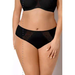 Dámské kalhotky s klasickým střihem. Kalhotky jsou vyrobené z jemného mikrovlákna. Boky modelu jsou mírně zvýšené. Přední díl zdobí vsadky z krajky s květinovým motivem.