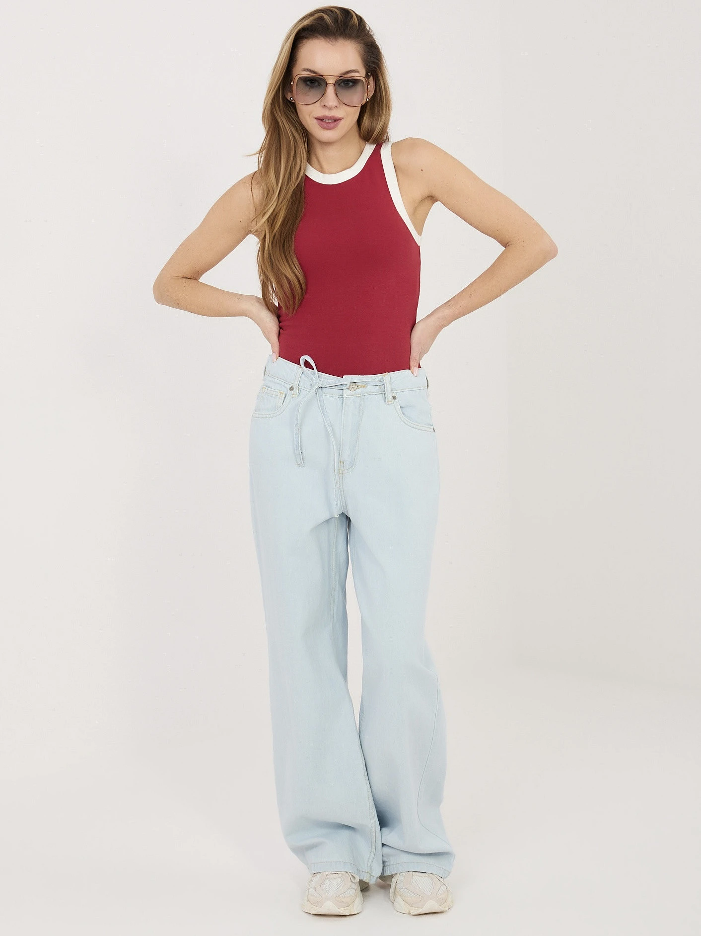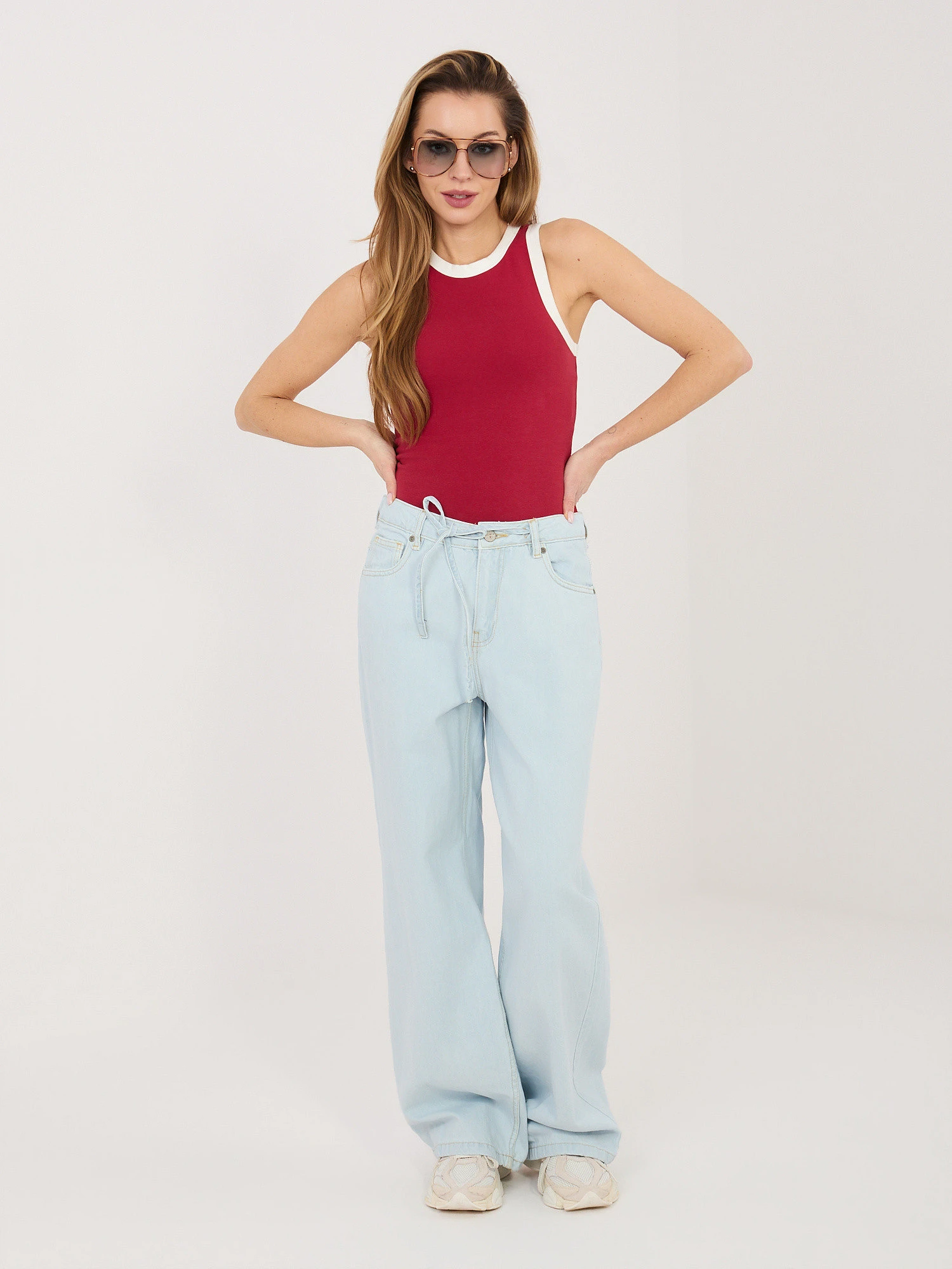 Modelka má na sebe jednu veľkosť. Rozmery modelky: výška 169 cm, prsia 88 cm, pás 68 cm, boky 89 cm