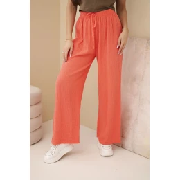 Mušelínové nohavice so širokými nohavicami malinová