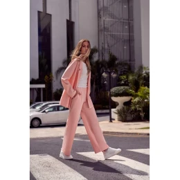 Kalhoty s rozšířenými nohavicemi model 18003322 pudrové - Moe
