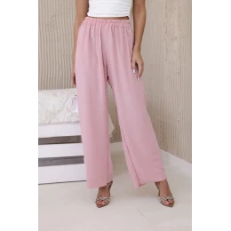 Nohavice so širokými nohavicami púdrovo ružové