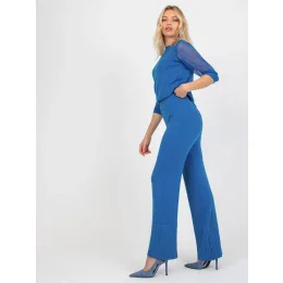 Tmavomodré pletené nohavice so širokými nohavicami.