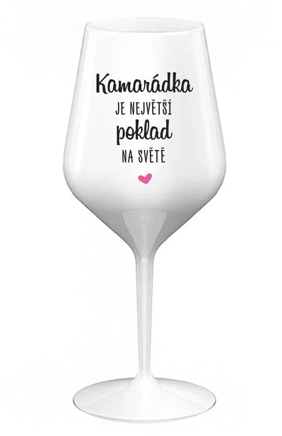 KAMARÁDKA JE NEJVĚTŠÍ POKLAD NA SVĚTĚ - bílá nerozbitná sklenice na víno 470 ml